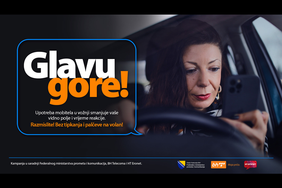 Kako bi podigli svijest vozača i ukazali na rizike korištenje mobitela za vrijeme vožnje, smanjili broj saobraćajnih nezgoda na cestama, Federalno ministarstvo prometa i komunikacija u saradnji sa BH Telecom-om i HT Eronet-om provest će medijsku kampanje, koja će trajati od 2. do 30. aprila 2023. godine.